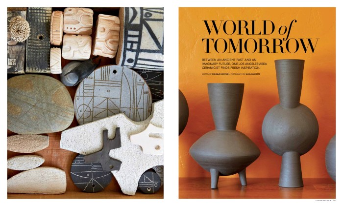 Ever wonder what future archeologists may uncover in the buried remnants of our homes? We hope they find the chic ceramics of Los Angeles artist Heather Rosenman, whose pieces often blend futuristic design with relics of antiquity. Think experimental sculptures that resemble the ruins of mysterious machines, and sleek vases fossilized in Rosenman’s signature lava glaze. Here, we dig deep into Rosenman’s creative process and her enduring love for California–despite the dust. Read More Here.